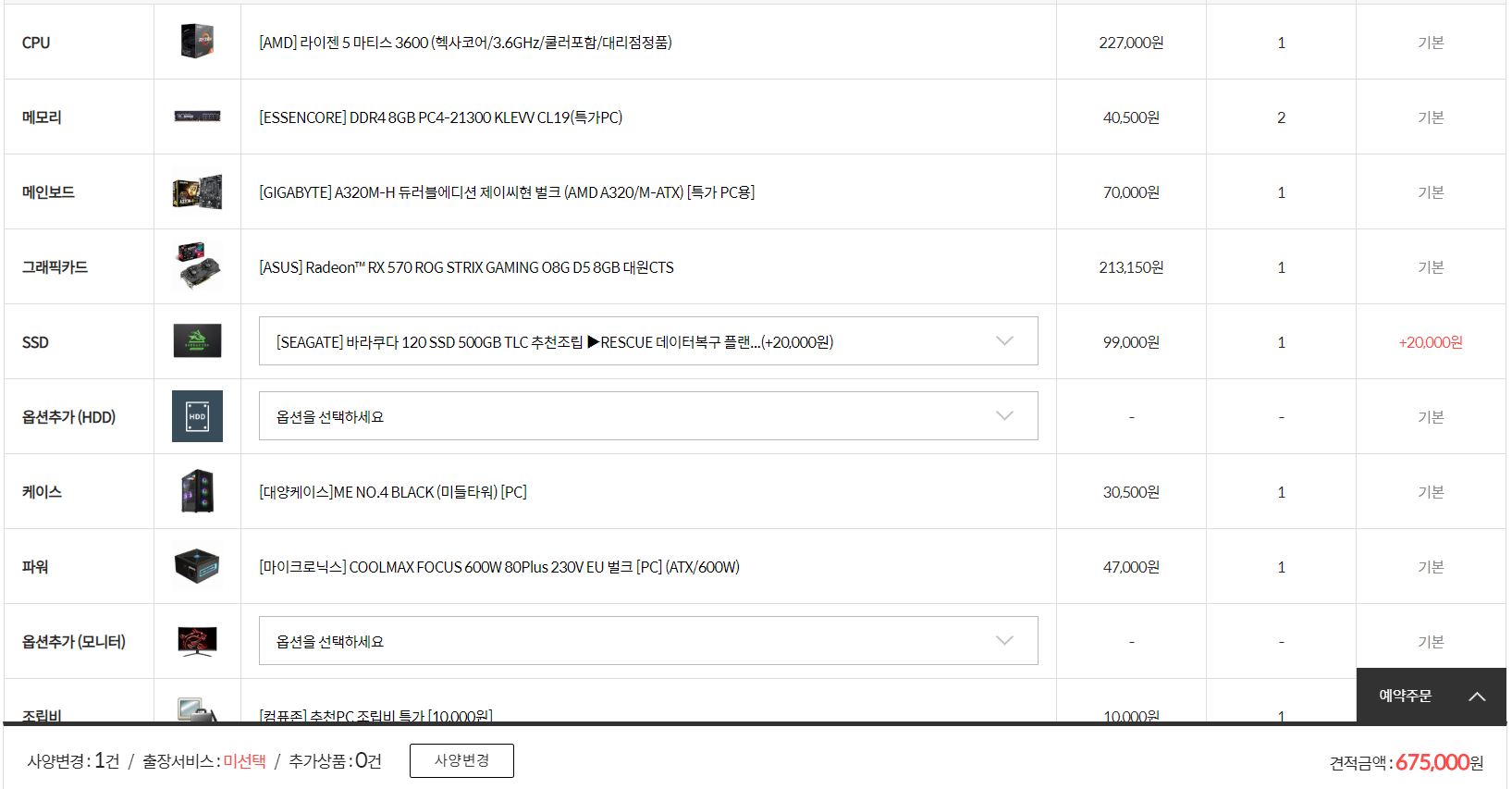 기존 특가에 비해서 cpu와 메인보드에 균형이 잡혀있으며