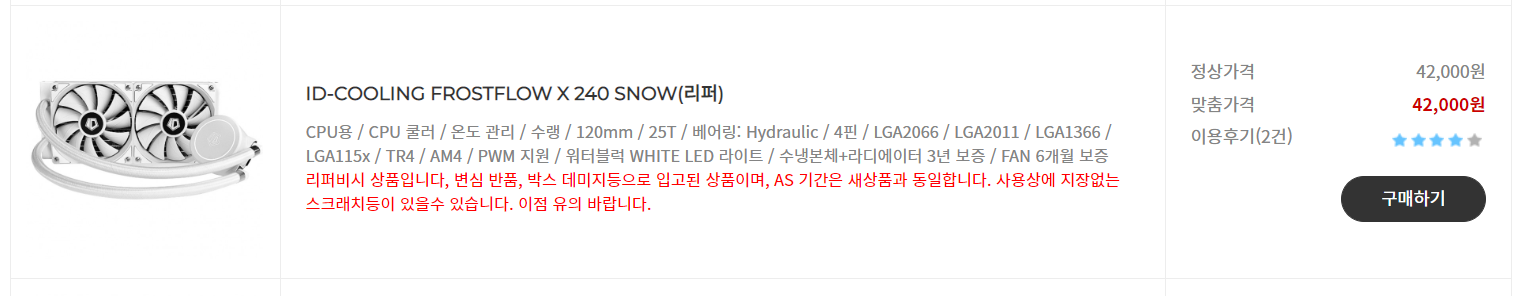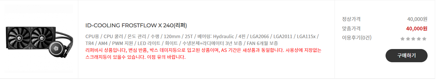 [리퍼/중고/변심상품] - PC케이스, 튜닝 용품 커스텀빌드 전문 쇼핑몰