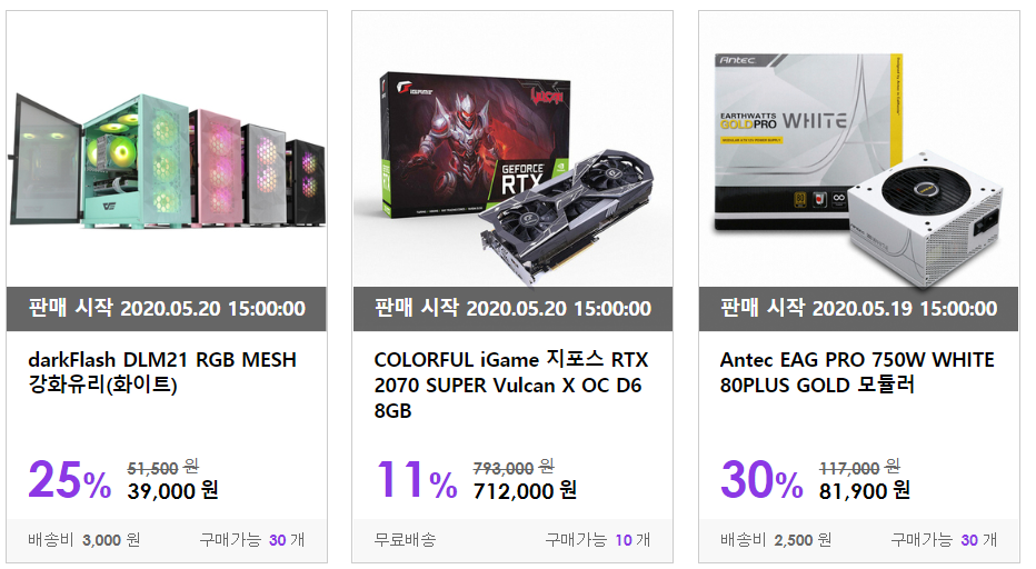 다나와 특가입니다. 약 2시간 30분 뒤에 열립니다.