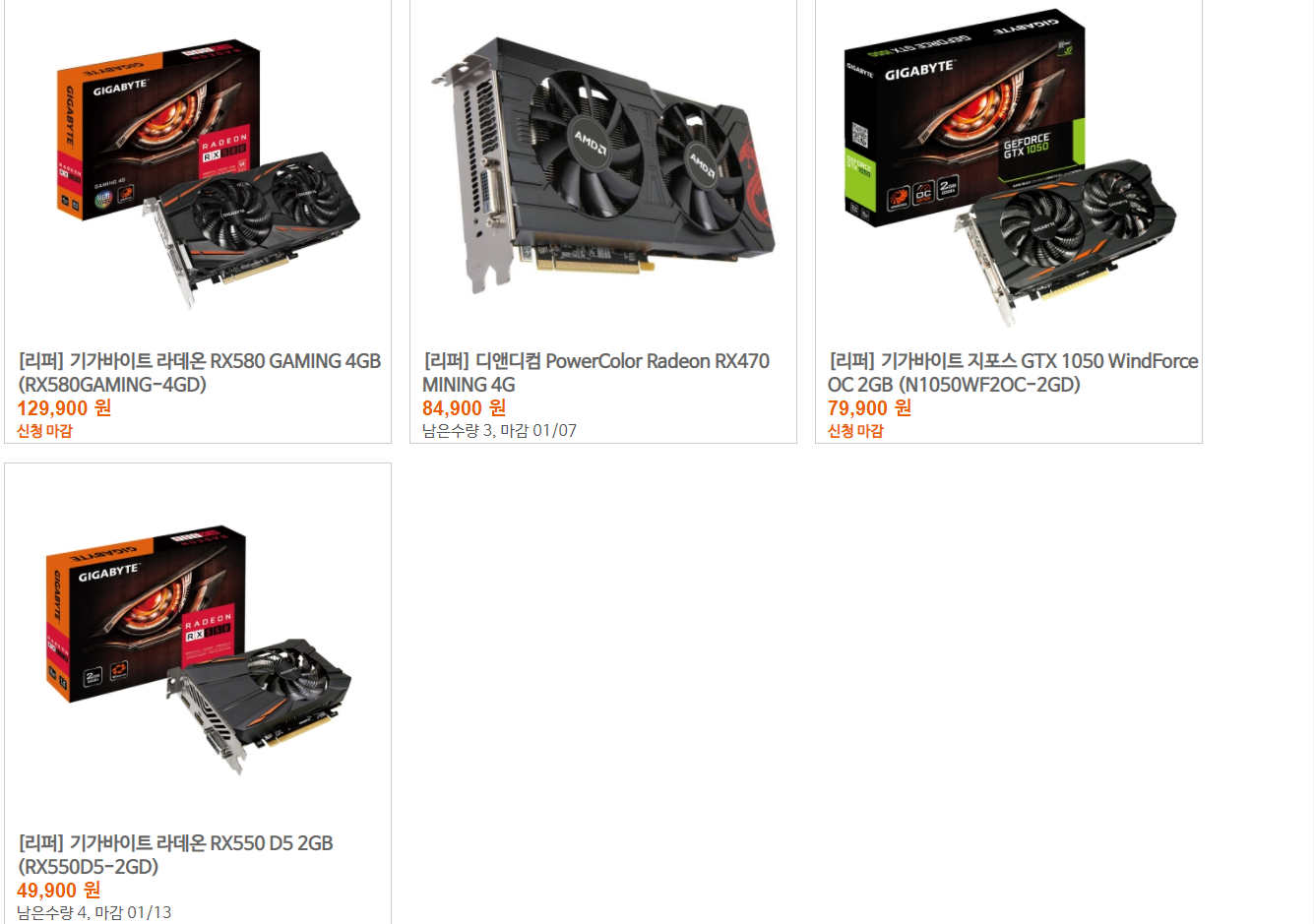 좀 고민할만한건 rx470하고 rx550, 1070ti 정도.... 글카 시세가 장난아니게 올라서.....